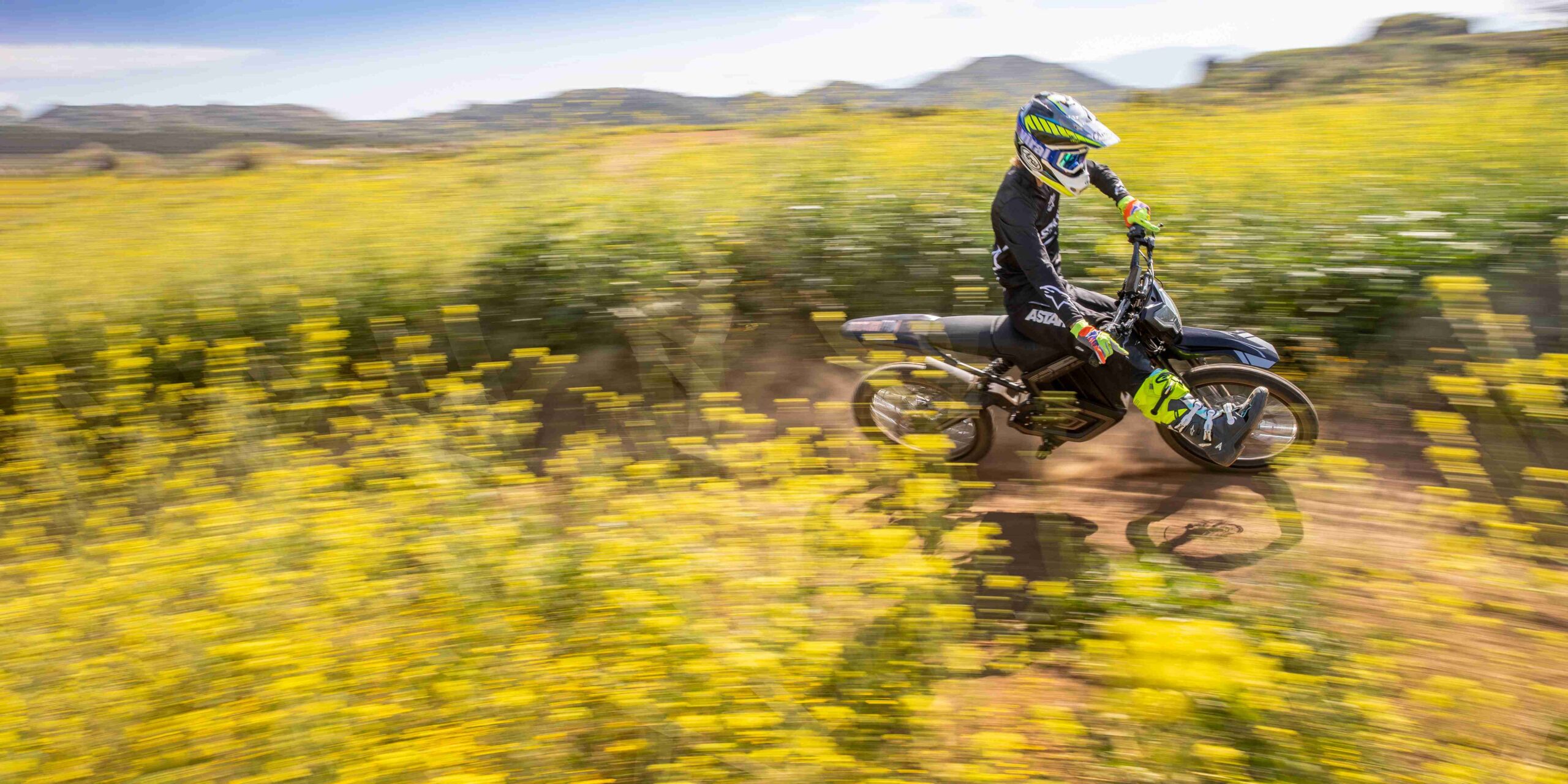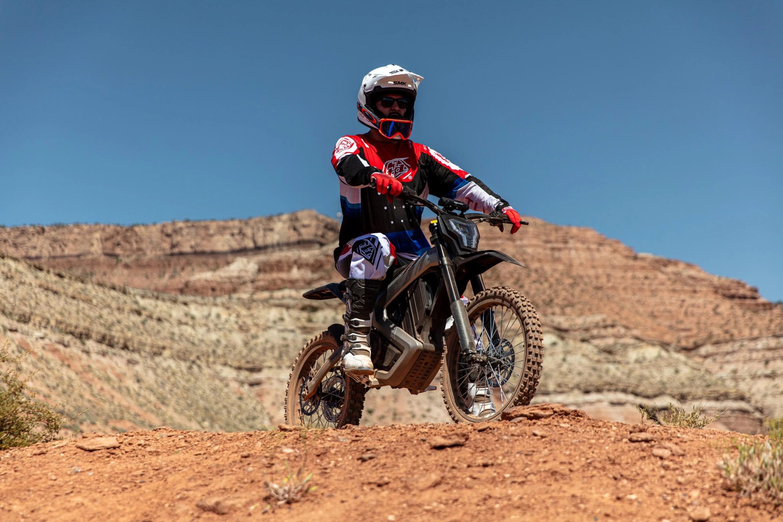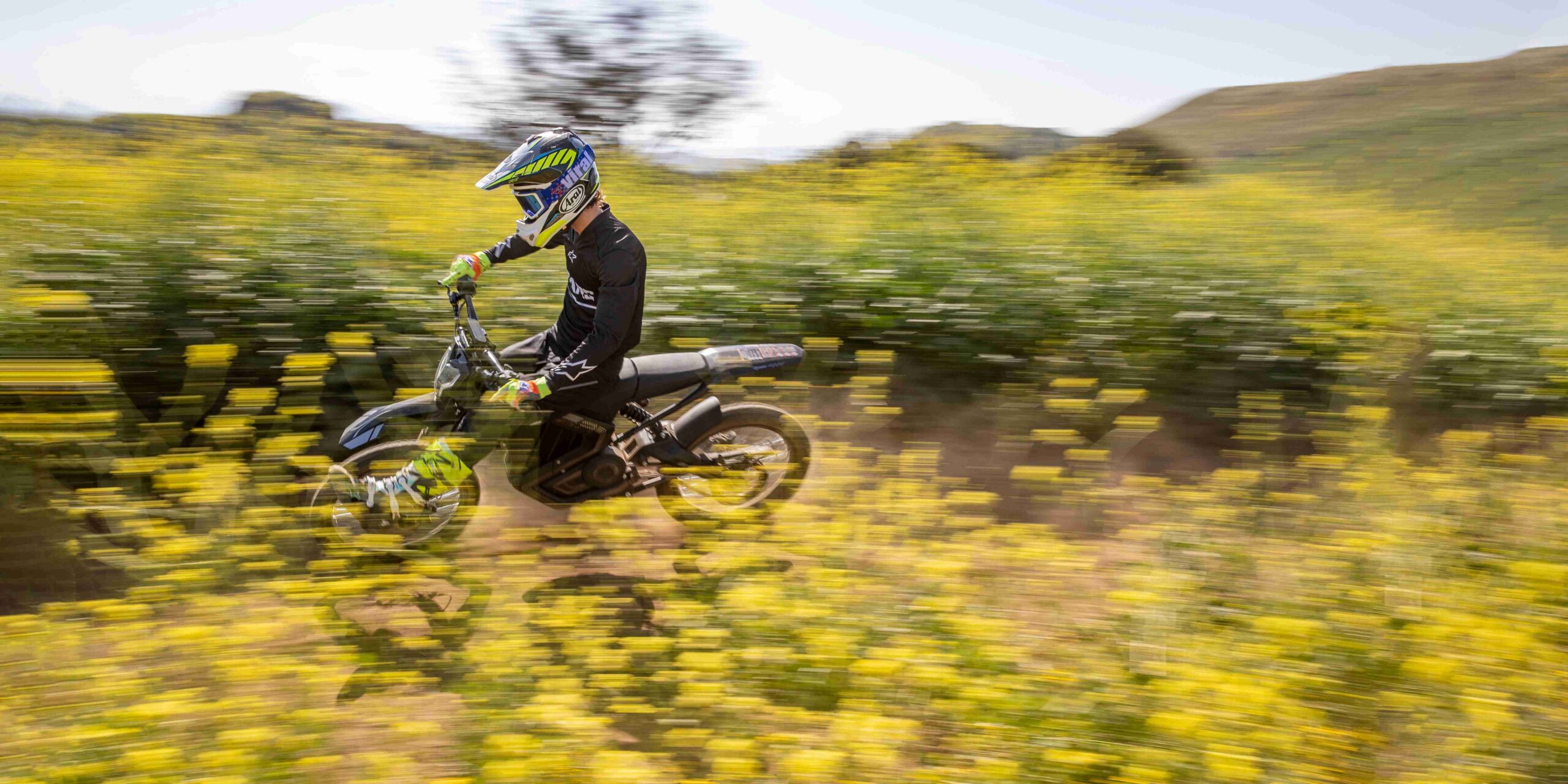 Weight distribution is evenly distributed so rider compression from the middle of the seat or standing on the pegs causes the front and rear suspension to compress equally. Others in the e-Moto category don’t have this neutral balance.